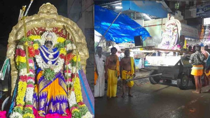 இரண்டு கைகளால் அபய முத்திரையைக் காட்டினார்.